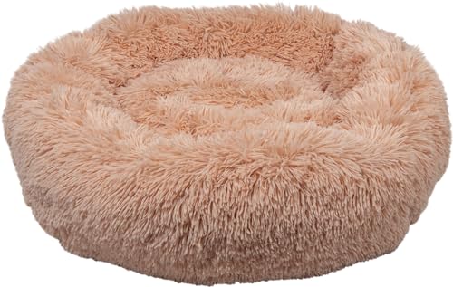 BVAGSS Panier Chien Chat Moelleux Rond Lits pour Chats, Fluffy Lit pour Chien Donut Anti Stress Peluche Confortable Lavable pour Chien Chat Petit Moyen Grand XH034 (Diameter:60cm, Light Brown)