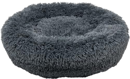 BVAGSS Panier Chien Chat Moelleux Rond Lits pour Chats, Fluffy Lit pour Chien Donut Anti Stress Peluche Confortable Lavable pour Chien Chat Petit Moyen Grand XH034 (Diameter:60cm, Dark Grey)