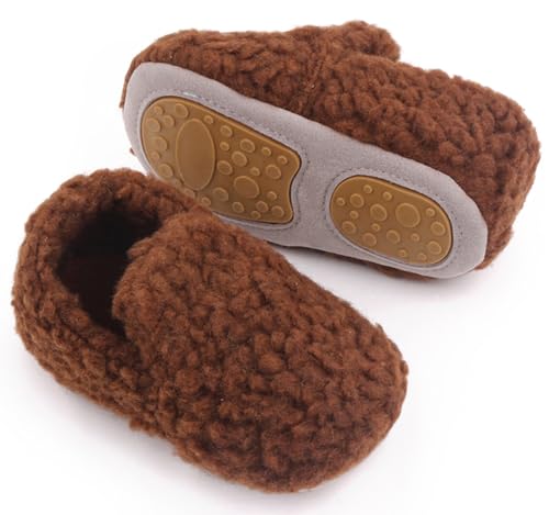 SEAUR Bottines Bébé Unisex Chaussure en Bas âge Naissance Hiver Chaussure en Peluche Chaud Bébé Garçon Fille Chaussons Tout-petit Brun 6-12 Mois