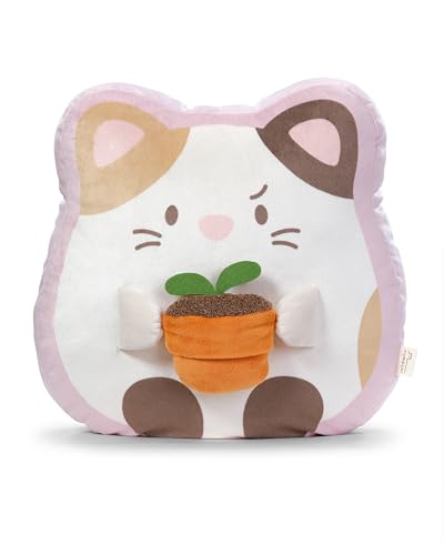 NICI mymochi 62390 Chat Angy en peluche, avec pot de fleurs, 35 x 33 x 12 cm, blanc, compagnon stylé à câliner ou comme accessoire, pour enfants et adultes
