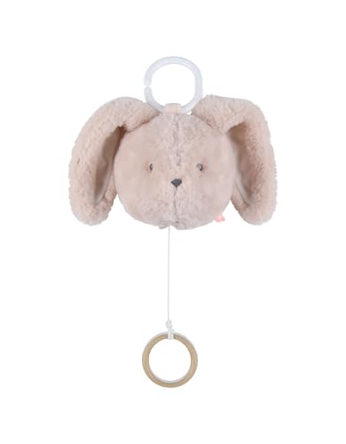 DOUDOU ET COMPAGNIE - Boîte à Musique Lapin Doudou beige – Peluche Musicale Ultra Douce Bébé avec Anneau Bois – Doudou Veilleuse Berceuse pour Endormir Bébé – Idée Cadeau Naissance - DC4370