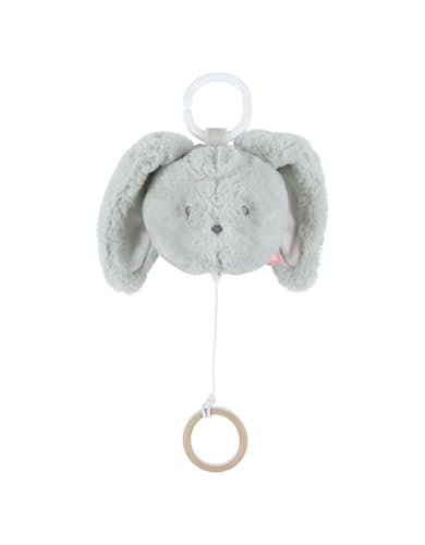 DOUDOU ET COMPAGNIE - Boîte à Musique Lapin Doudou vert sauge – Peluche Musicale Ultra Douce Bébé avec Anneau Bois – Doudou Veilleuse Berceuse pour Endormir Bébé – Idée Cadeau Naissance - DC4367