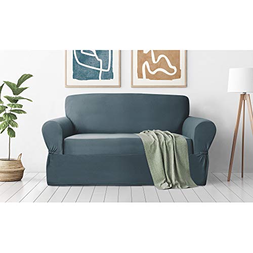 Zenna Home, Housse de Meubles Bleu Marine en Peluche Extensible 1 pièce