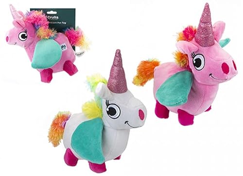 Crufts Grand Jouet couineur en Peluche Licorne – 1 pièce – Couleurs Assorties Rose Clair et Blanc – Parfait pour Les Chiens pour Les Amoureux des Animaux