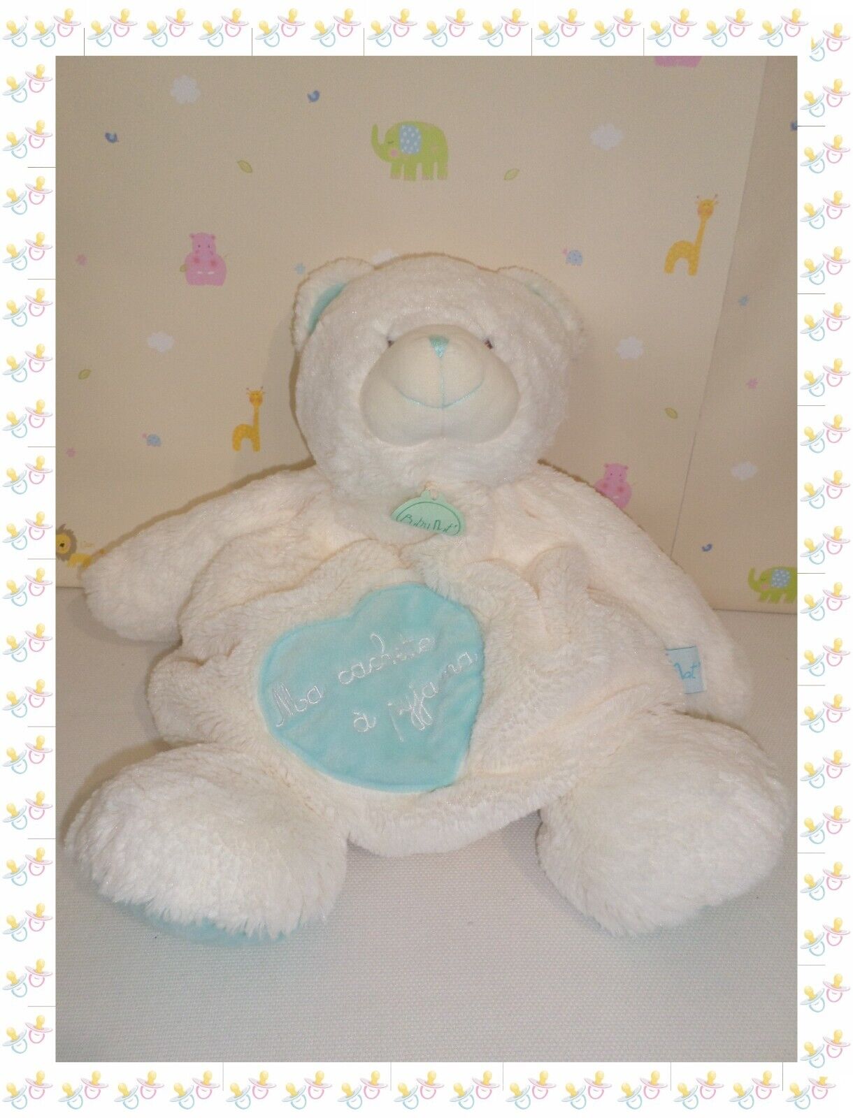 ⑤ - Doudou Peluche Range Pyjama Ours Blanc Vert Baby Nat