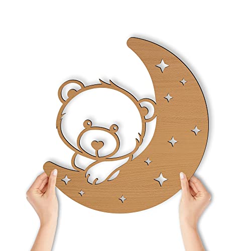 Lampe murale en bois MDF avec motif lune et ours en peluche - Veilleuse pour chambre d'enfant - Fonctionne avec piles