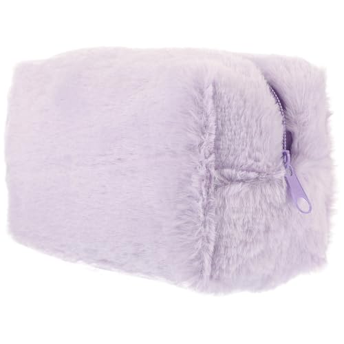 VILLCASE Trousse de Maquillage en Peluche Moelleuse Violette Trousse de Toilette de Voyage Portable Fermeture Éclair Paquet de Rangement Cosmétique Léger pour Accessoires et Pinceaux