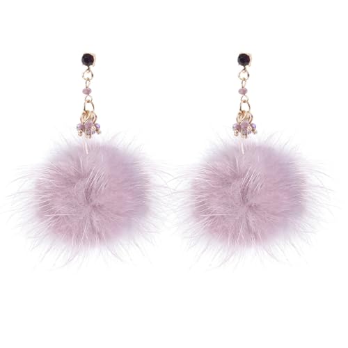 VALICLUD Boucles Oreilles Pendantes Longues Peluche Violette Boules Moelleuses Élégantes et Légères pour Femme Accessoires Raffinés pour Fête et Usage Quotidien