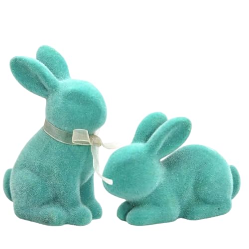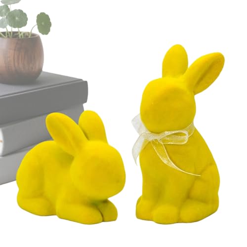 Genérico Figurine de lapin | 2 pièces statues d'animaux de Pâques avec peluches | Décorations de lapin en résine - pour exposition sur table, étagère cheminée, plateau étagé, décoration