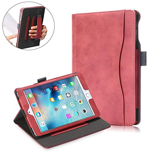 QYiD Coque pour iPad Mini 5 2019 / iPad Mini 4, Folding Stand Smart Protective Multi-Angle Viewing Cover with Pencil Holder & Auto Wake/Sleep for iPad Mini 5th Generation 7.9" (Rouge)