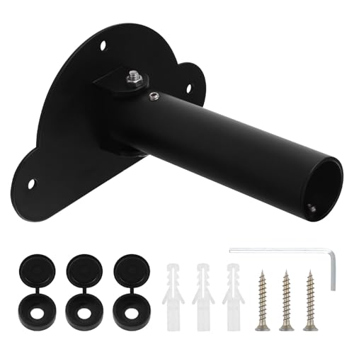 Support Tringle Penderie en Acier Inoxydable, MYLERCT 38 mm Réglable Support de Tige de Bride, 2 Pièces Noir Douilles de Poteau de Penderie, avec Vis, en Forme de U, pour Rideau ou Armoire