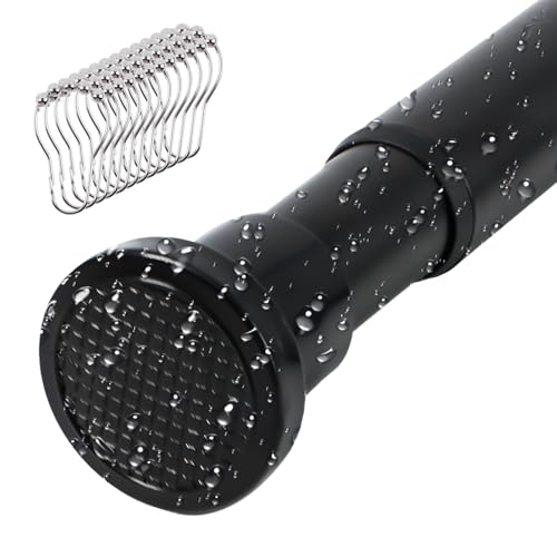 Scettar Tringle à Rideau de Douche Télescopique Sans Perçage 80-165cm, Barre de Rideau pour Fenêtre, Salle de Bain, Penderie, avec 12 Pcs Anneaux Rideaux Douche