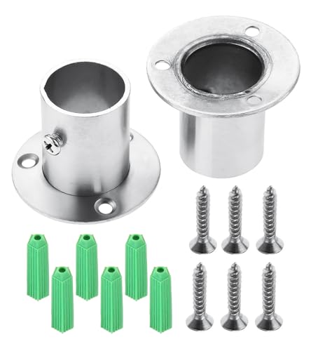 Hicello Lot de 2 Supports avec Bride INOX. pour Tringle de Penderie ⌀25mm, Embase Platine Ronde pour Fixation de Tringle à Rideau (de douche)
