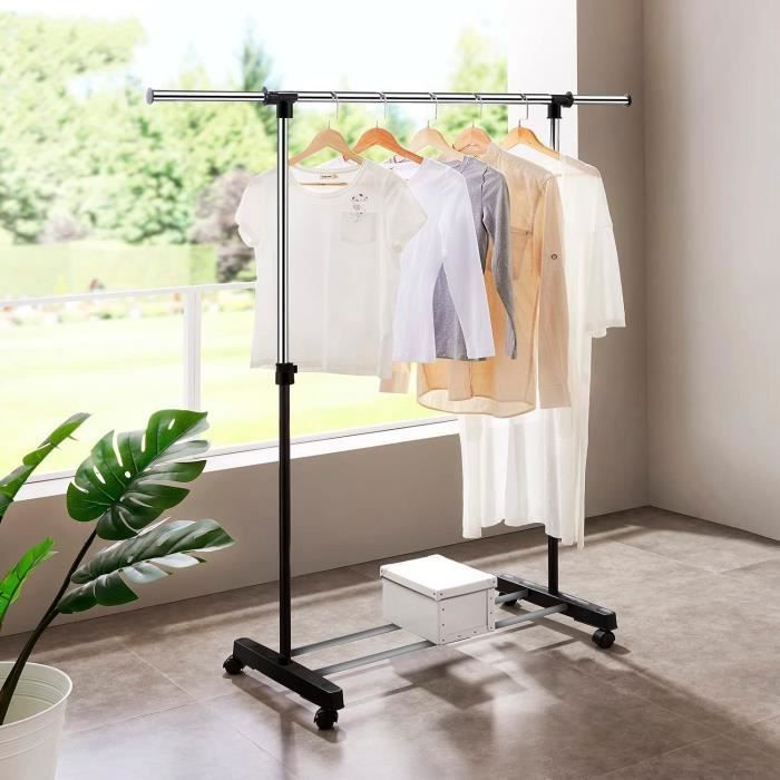 Newpop portant a vetement avec roulettes, tringle réglable hauteur 90-160CM, largeur 80-150CM, penderie à vêtements portable extensible, pour chambre et balcon accrocher vêtements, placer chaussures