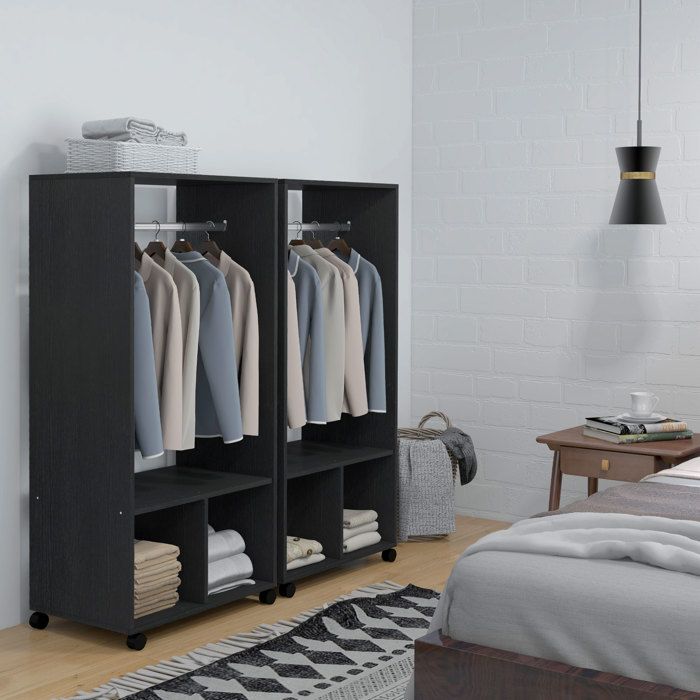 Lot de 2 portants à vêtements penderie mobile avec roulettes 2 niches + Grand Espace penderie en bois noir