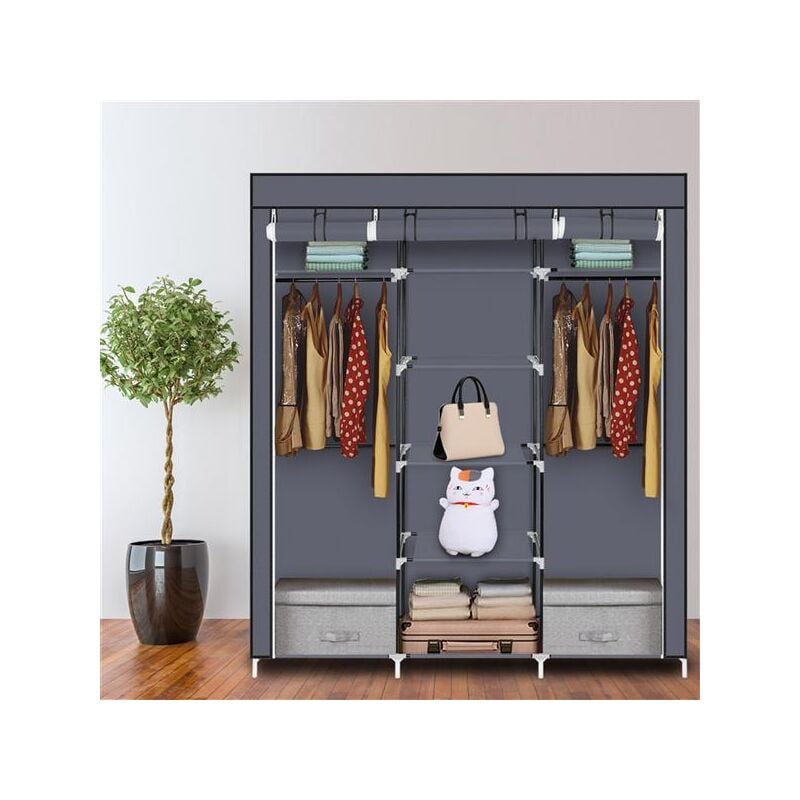 Armoire de Rangement, 15045175 CM-Penderie Portable avec Barre de Suspension, Porte-vêtements Pliable, Vestiaire, Chambre, Salle d'étude,GRIS