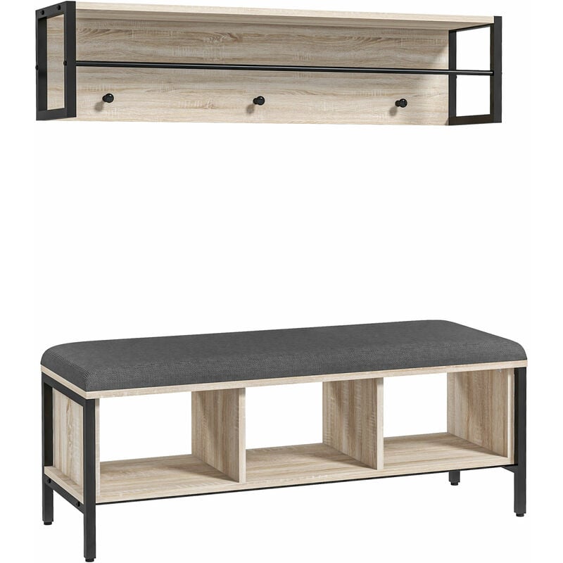 Homcom - Porte-manteau mural vestiaire d'entrée banc à chaussures 3 compartiments 3 patères barre penderie acier noir aspect chêne clair
