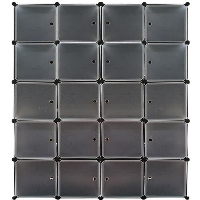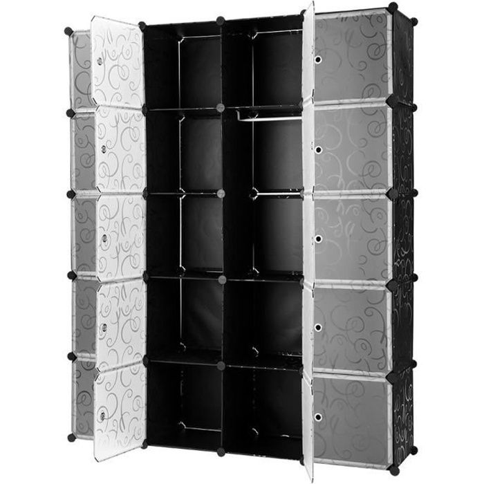 Armoire penderie modulable 10 cubes 2 étagères autocollants décoratifs plastique blanc 111x47x145 cm
