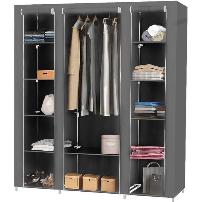 Armoire Penderie Gris - Portable Storage Modulable - Meuble Étagères de Rangement DIY pour Vêtements