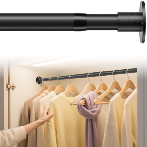 Tringle Vêtements Extensible, 43-68cm Tringle à Vêtements avec Base Ronde Réglable en Acier Inoxydable, Rail pour Suspendre des Cintres et Habillement Dans Penderie, pour Chambre à Couch/Noir Mat