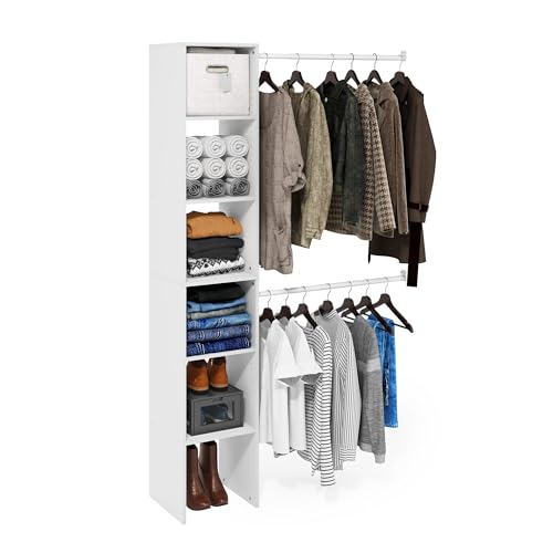 WOLTU Porte-Manteau Meuble pour Vêtements avec Un Tringle et 4 Étagères de Rangement en Bois et Acier, Penderie Ouverte pour Salon, Chambre Chêne Clair + Blanche