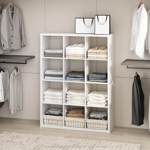Furinno Cubic Organisateur de Placard 12 Cubes, étagères Ouvertes, Structure Extra épaisse pour penderie, Chambre, Salon, Blanc