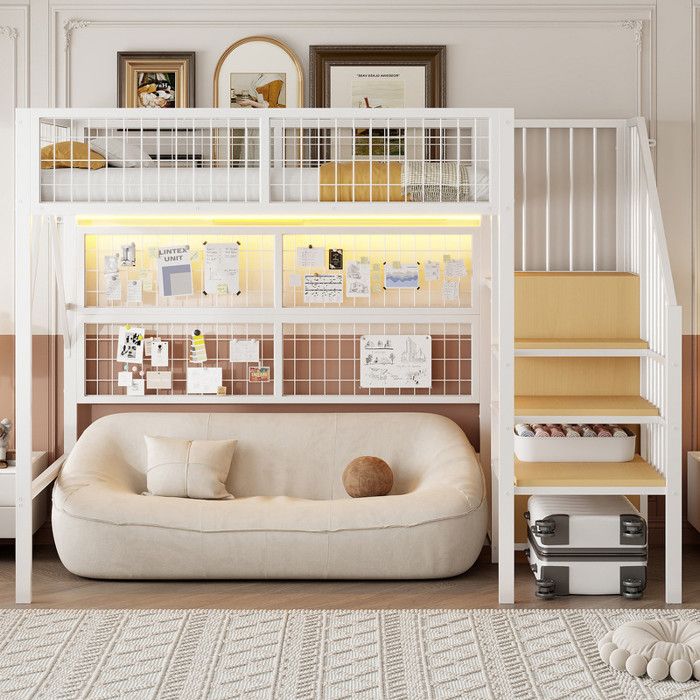 Lit mezzanine 90x200 cm aapaas blanc avec étagères, penderie simple et chariot de rangement amovible