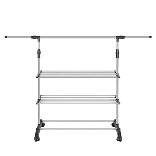LANTUS Portants, Portant a Vetements, Porte-Manteau, Hauteur Réglable, Penderie à Vêtement Télescopique, avec Roulettes,78 * 42*(70-150) cm (acier inoxydable)