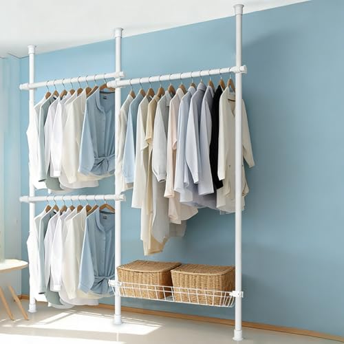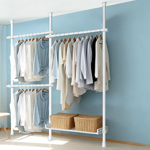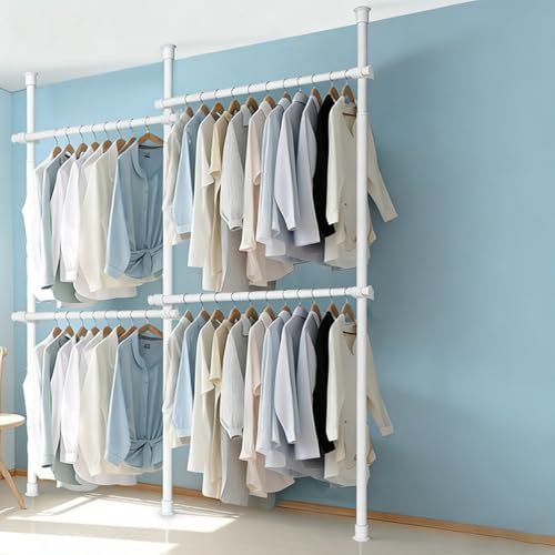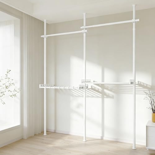 Xalteafe Penderie Telescopique,Penderie Ouverte réglable,DIY Portant Telescopique Portable et Très résistant,Penderie Telescopique sans Percage,Hauteur Réglable 110-300cm,pour Chambre Balcon