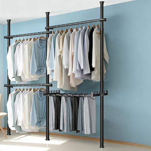 Penderie Telescopique, Système De Rangement Télescopique Telescopique Systeme Portant De Vêtement Garde-Robe Téléscopique Penderie 3 Pôles 4 Barres Hauteur Réglable 110-310 Cm
