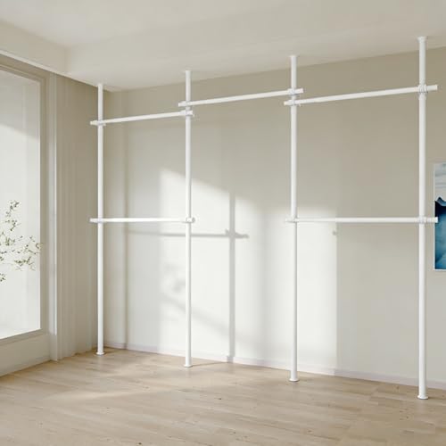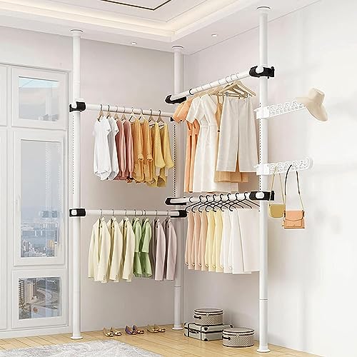 Systeme Penderie Telescopique Garde-robe, Portant de Vêtement Système à Vêtements Télescopique avec 3 pôles, 4 barres et Crochets Latéraux, 240-320cm Hauteu et 230-330cm Largeur, Multicolore