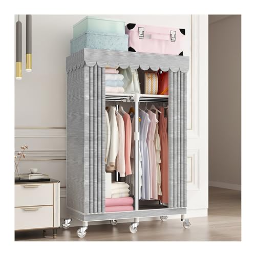 Gumatea Armoire Tissu avec Housse, Penderie en Tissu Portable avec roulettes, Gris Armoire de Rangement avec Penderie et Étagères, Garde-Robe pour Vestiaire, Chambre, Dressing