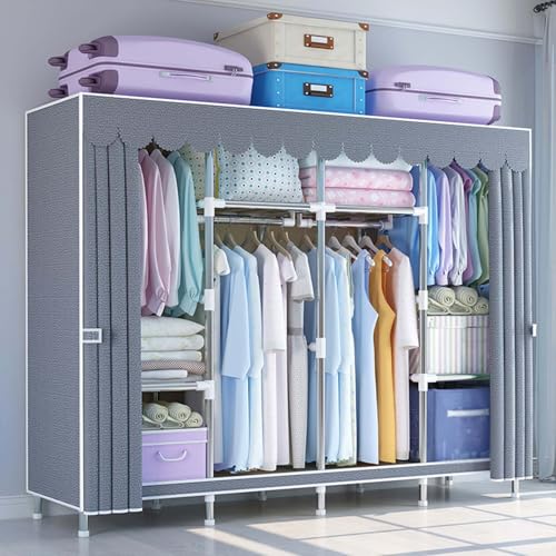 GWFBLID Armoire de Rangement Penderie Portable avec 3 Barre de Suspension et étagères Porte-vêtements Pliable Penderie Tissu avec Rangement pour Vestiaire Chambre Salle d’étude