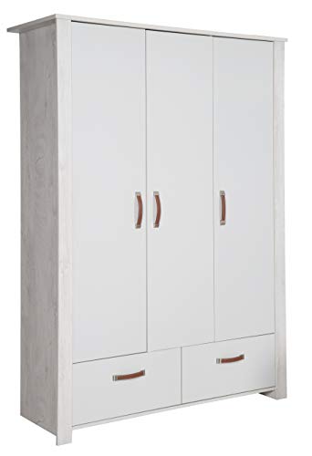 roba Armoire Enfant à 3 Portes "Gabriella" - Garde-Robe en Bois avec Penderie et 6 Étagères - Blanc/Décor Bois