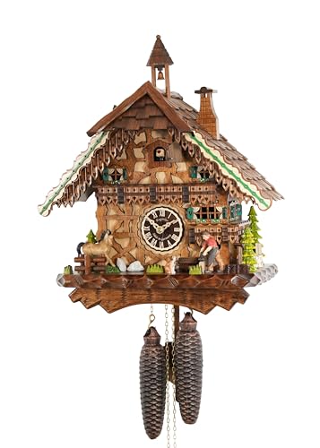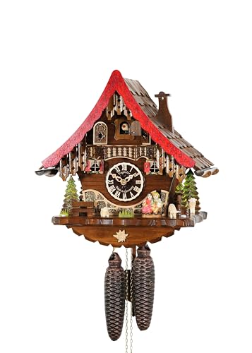 Trenkle Pendule à Coucou Chantant Tous Les Quarts d'heure avec Mouvement 1 Jour 3 Feuilles TU 621 Nu