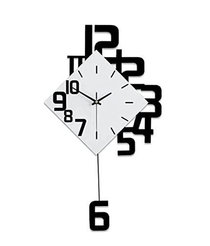 ZYFAB Moderne Horloge Murale avec Pendule Unique Métal Horloge Murale Contemporaine Minimaliste Horloge décorative avec Silencieux Non tic-tac Fonctionnement,Noir