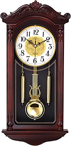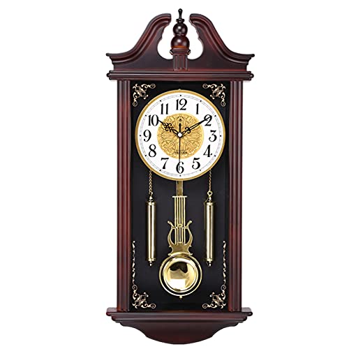 fikujap Horloge Pendule Murale Style Vintag, Horloge Murale avec Balancier, Horloge Murale pour Salon Cuisine Bureau Maison Silencieuse Horloge en Bois Massif Sculpté Imitation,C