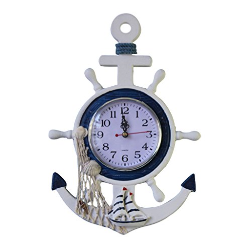 Horloge Pendule Murale en Forme Navire Ancre Style Nautique Décor Maison-23 x2x33cm