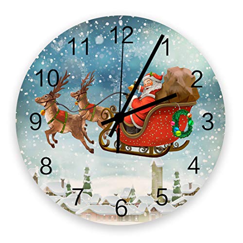 803 Ronde Murale Horloge Noël Père Noël Elk Snowy Pendule Murale Parfait Horloge Pendule Murale Universel Horloge Murale Ronde 9.8Inch pour La Cuisine, Home, Bar