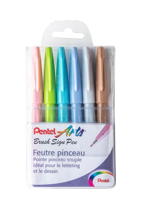 Pochette de 6 Feutres pinceau Pentel Brush Sign Pen Pastel
