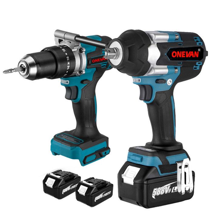 Kit outillage sans fil - ONEVAN - ONEVAN - Clé à chocs 1/2 pouce 1000 N·m - Perceuse-visseuse 20V sans balais - 2x 3Ah