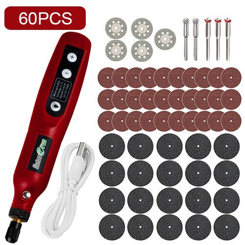 Mini perceuse sans fil aste USB,stylo de gravure sans fil aste avec LED,outil distant Dremel,perceuse électrique,accessoires de meulage - Type Red-60PCS