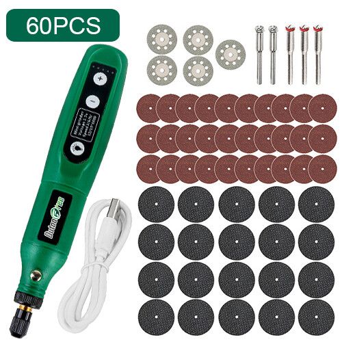 Mini perceuse sans fil aste USB,stylo de gravure sans fil aste avec LED,outil distant Dremel,perceuse électrique,accessoires de meulage - Type Green-60PCS