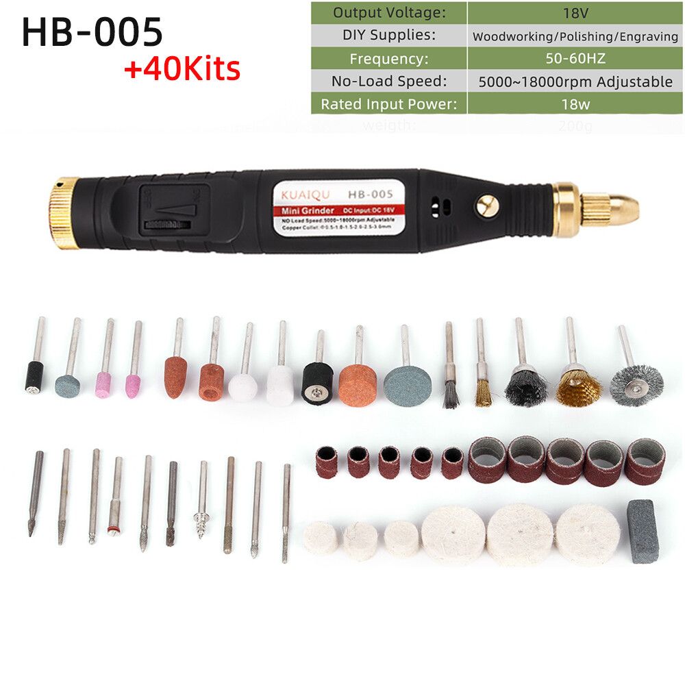 Outil rotatif à vitesse Variable,outils électriques,Mini perceuse,position pour Dremel,mini rectifieuse,500018000 tr/min - Type HB-005 40Kits