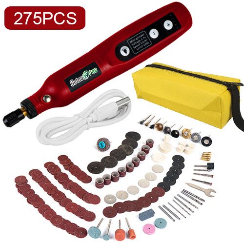 Mini perceuse sans fil aste USB,stylo de gravure sans fil aste avec LED,outil distant Dremel,perceuse électrique,accessoires de meulage - Type Red-275PCS
