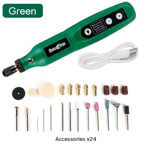 Mini perceuse sans fil aste USB,stylo de gravure sans fil aste avec LED,outil distant Dremel,perceuse électrique,accessoires de meulage - Type Green24PCS