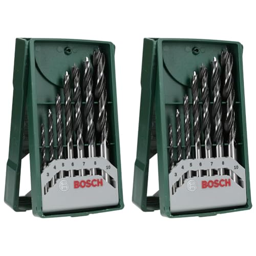 Bosch 7 pces. Kit de forets à bois hélicoïdaux Mini-X-Line (pour bois tendre et dur, Ø 3-10 mm, accessoires perceuse-visseuse et support de perçage) (Lot de 2)