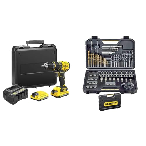 Stanley FATMAX Perceuse à Percussion sans Fil 18V Lithium Ion 80 Nm Moteur Brushless 35 700 cps/mn & STANLEY Lot de 100 forets hex et accessoires, sur Métal, en Plastique