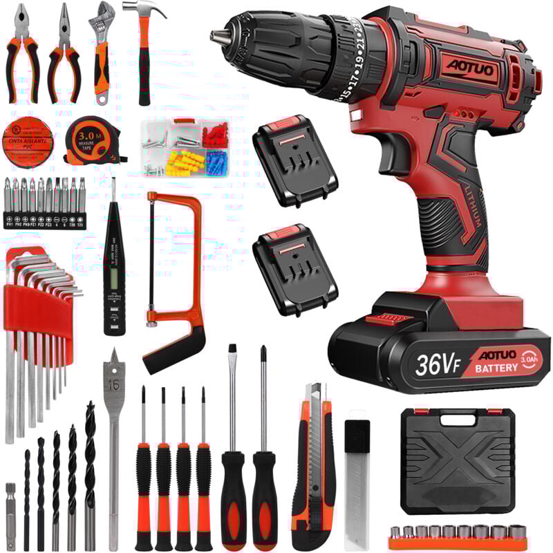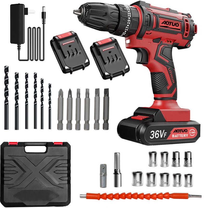 Perceuse Visseuse Sans Fil Magicfox 36V avec 100 Accessoires, 2 Batterie , Visseuse Devisseuse San Fil Multifonctionnelle 40N.m couple Max, 2 Vitesses