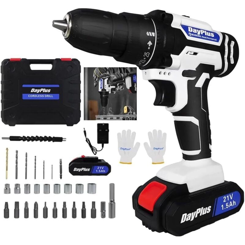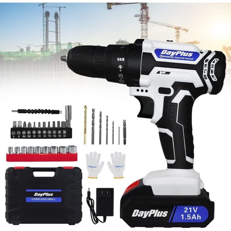 Perceuse Visseuse Sans Fil 21V, Visseuse Devisseuse Sans Fil avec 1 Batterie, 45Nm Perceuse Électrique, 25+1 Réglages de Couple, 29 Accessoires, 2